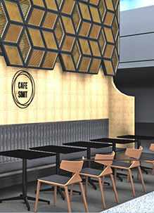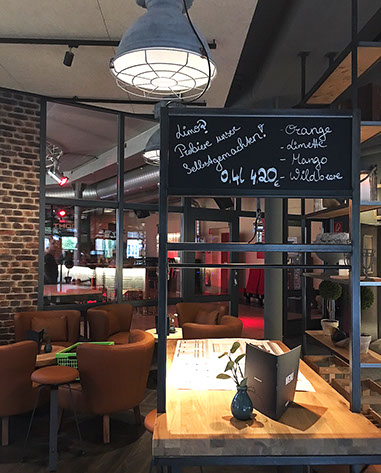 Hier geht es international zu. Der von uns für einen Wettbewerb konzipierte und gestaltete Entwurf des Café Simit am Verkehrsknotenpunkt Flughafen Düsseldorf greift das Thema Internationalität – insbesondere aus der arabischen Welt – auf.